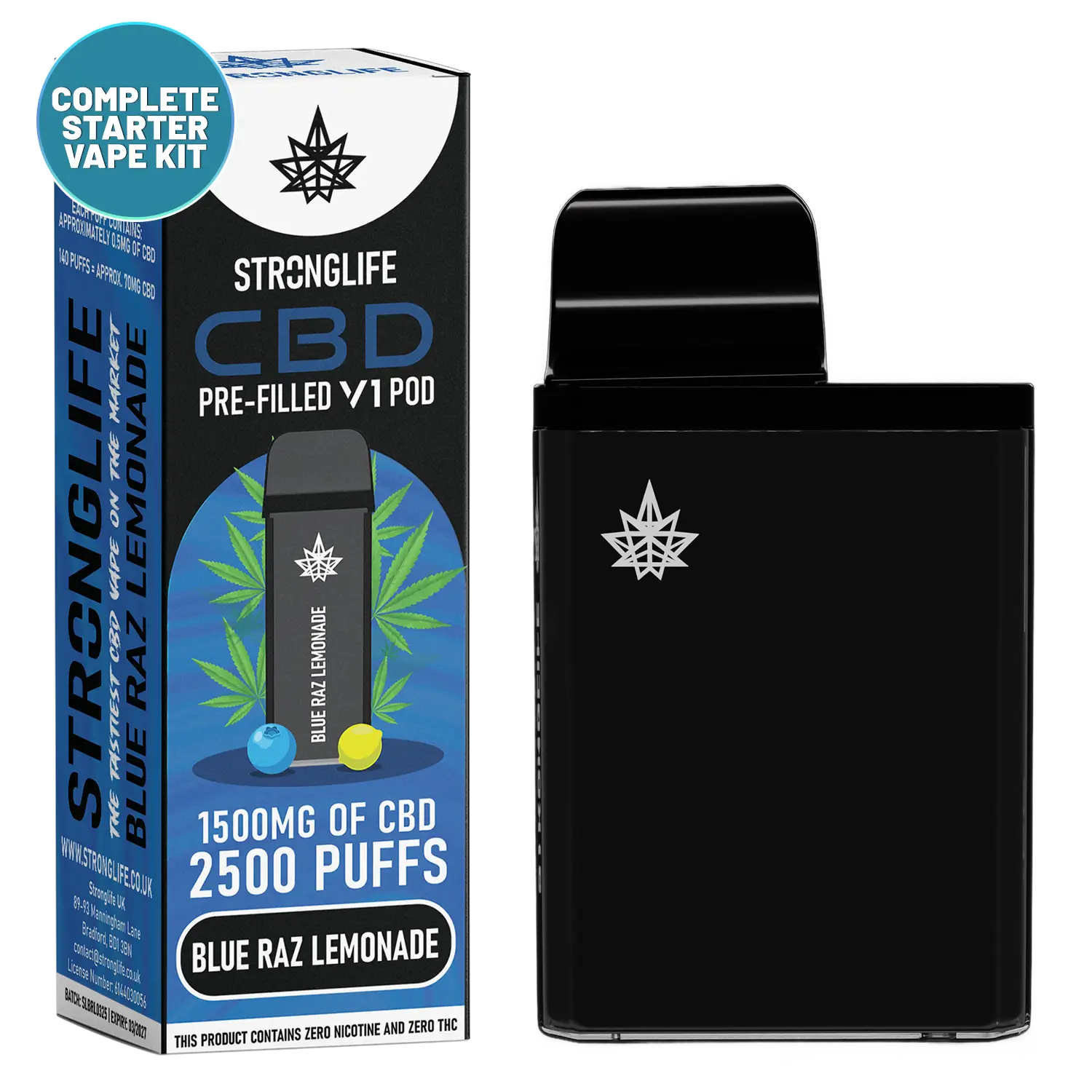 Because the V1 Pod Vape Kit is a complete starter bundle, we’re including 1 free Stronglife CBD Pod of your choice with every device purchase! That means you can pick from our range of flavour-packed CBD pods, including Blue Raz Lemonade, Peach Mango, Watermelon Ice, and more, to enjoy right away.