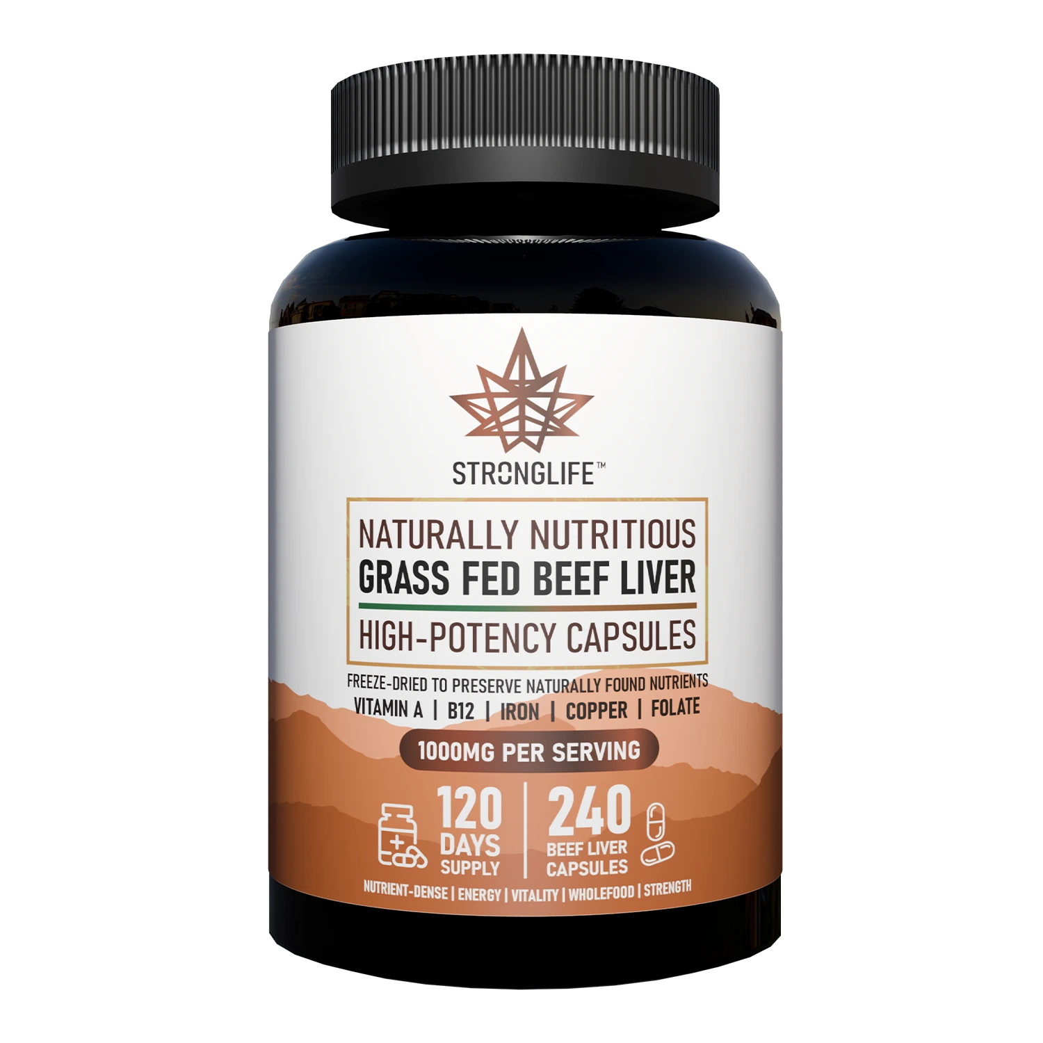 Beef Liver Capsules are simply encapsulated, desiccated beef liver — liver that has been dried, powdered, and put into capsules for convenience. At Stronglife, we take that a step further by using only freeze dried beef liver from Brazilian grass-fed cattle, ensuring maximum nutrient retention and quality.